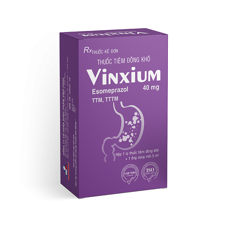- CompositionEsomeprazol 40mg (Esomeprazol sodique) Solvant : Chlorure de sodium 45mg, eau pour injection q.s 5ml