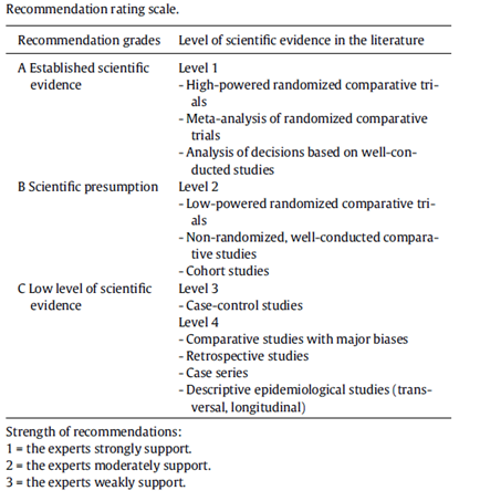 Figure 3.  Scale for grading recommendations and levels of scientific evidence