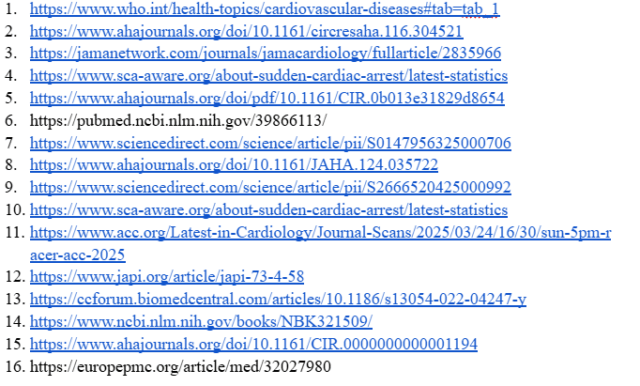 According to the World Health Organization (WHO), cardiovascular diseases (CVDs) are the leading cause of death globally, accounting for approximately 17.9 million deaths annually, over 80% of which are due to heart attacks and strokes (1). Cardiac arrest significantly contributes to this, estimated to account for 15–20% of all deaths (2).